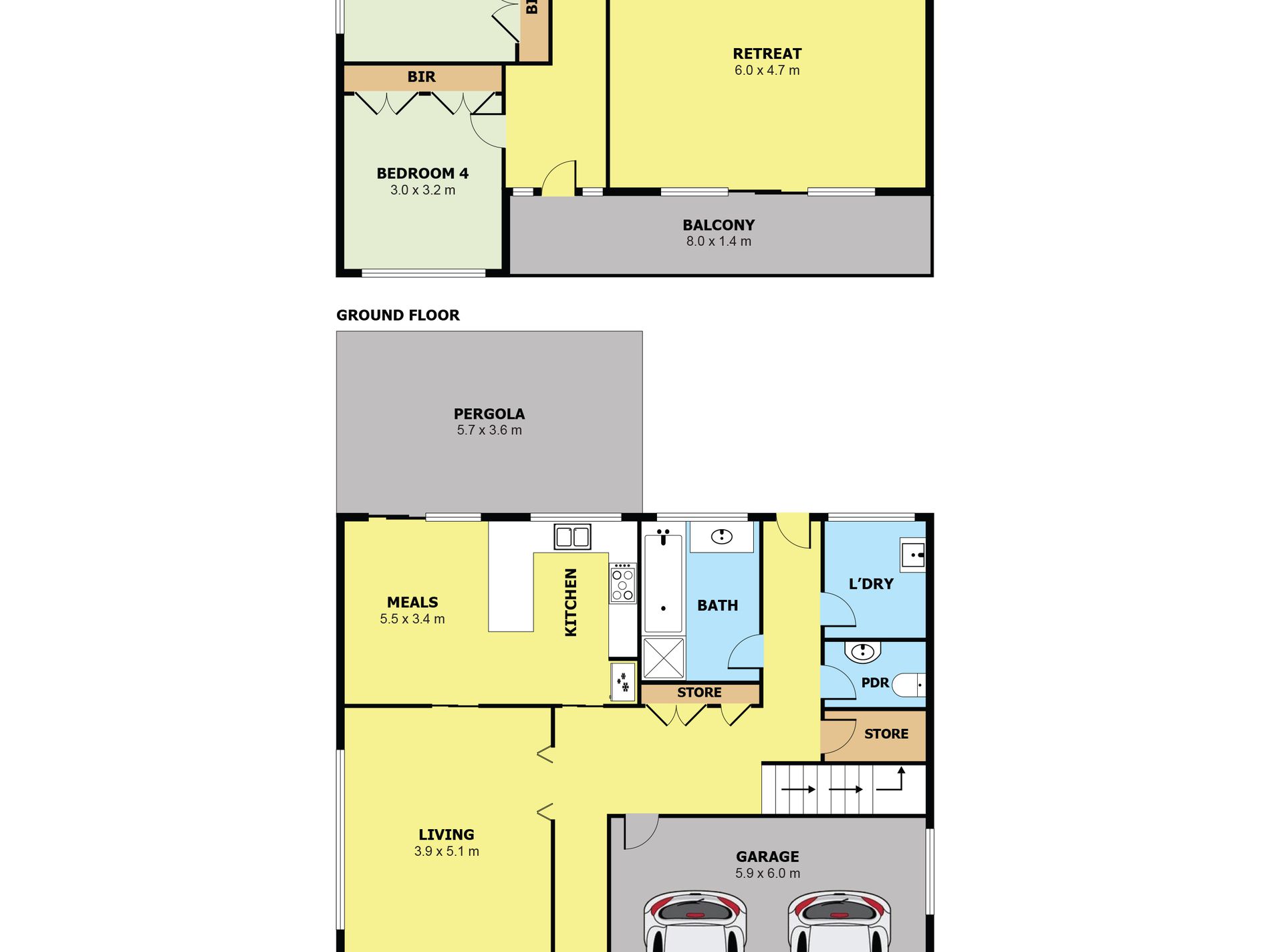 The ground floor features a welcoming formal living area, complemented by an open-plan kitchen and meals zone that forms the heart of the home. This space flows seamlessly through to the outdoor pergola, providing an ideal setting for year-round entertaining. Upstairs, a generous retreat offers an additional living zone, perfect for family relaxation or a dedicated children’s area.